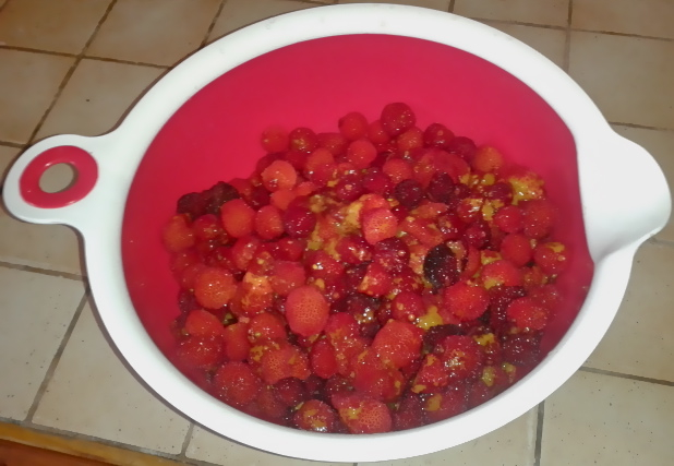 - In a mixing ball, top off the arbutus with sugar, honey and lemon juice. Stir gently so all the berries get covered in sugar/honey/lemon and let marinate for 24 hours.