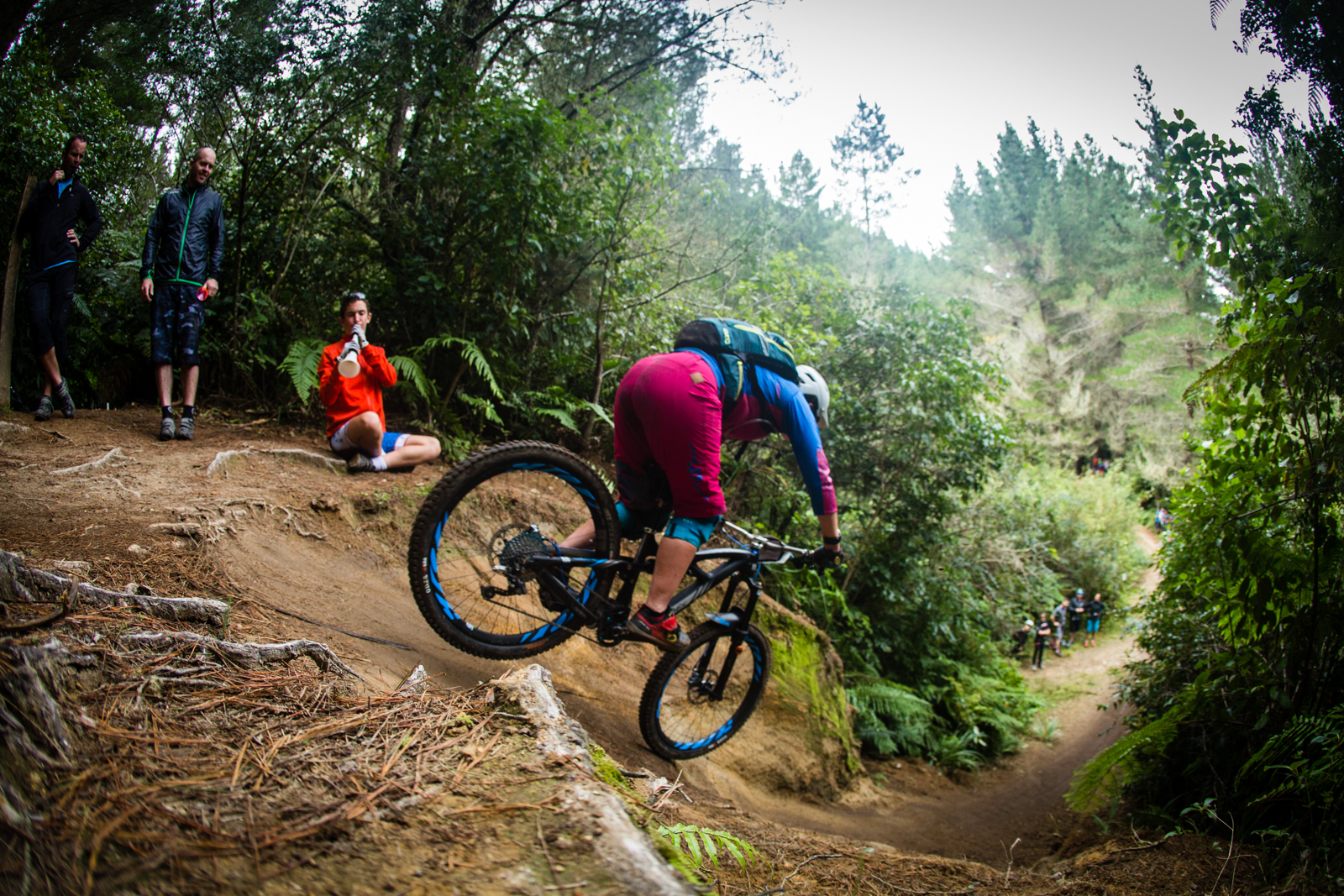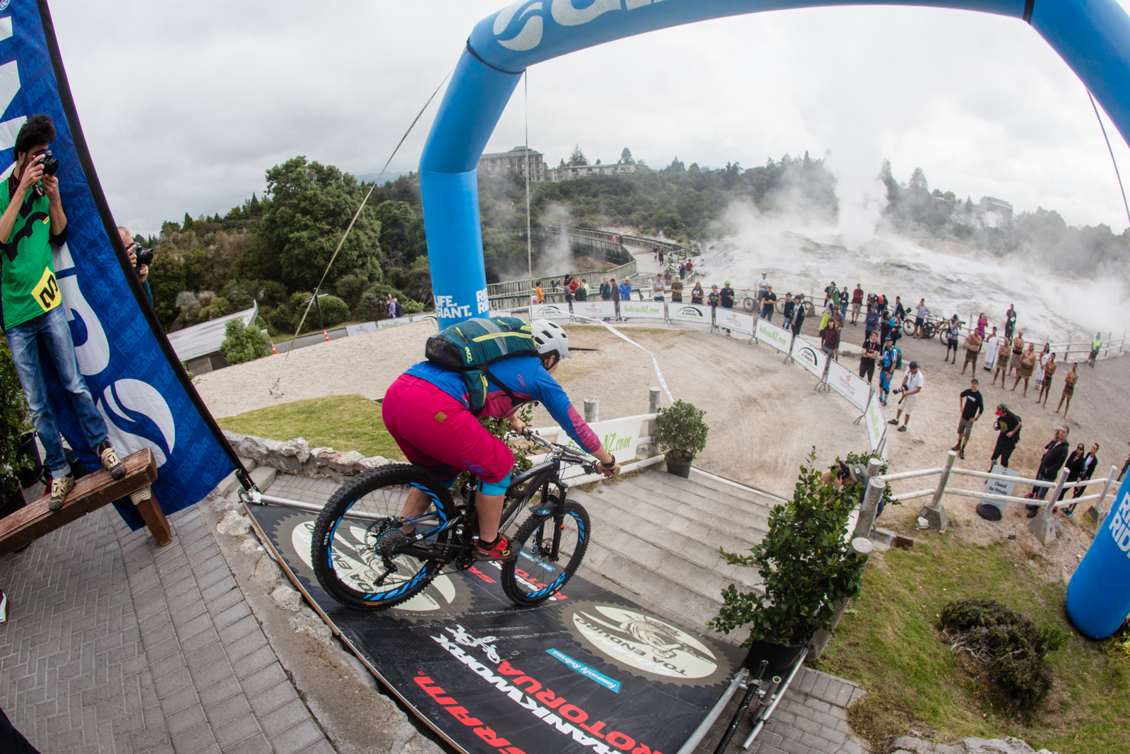 The course was really fun and technical due to the slick roots everywhere. And the best would be do go stage by stage as each had their own peculiarity. We started off at the Te Puia center that host the Maori Arts and Crafts instute and is located in a geothermal valley. The first 6 stages where in the Whakawerawera forest and the &th and last stages was at Skyline bikepark.